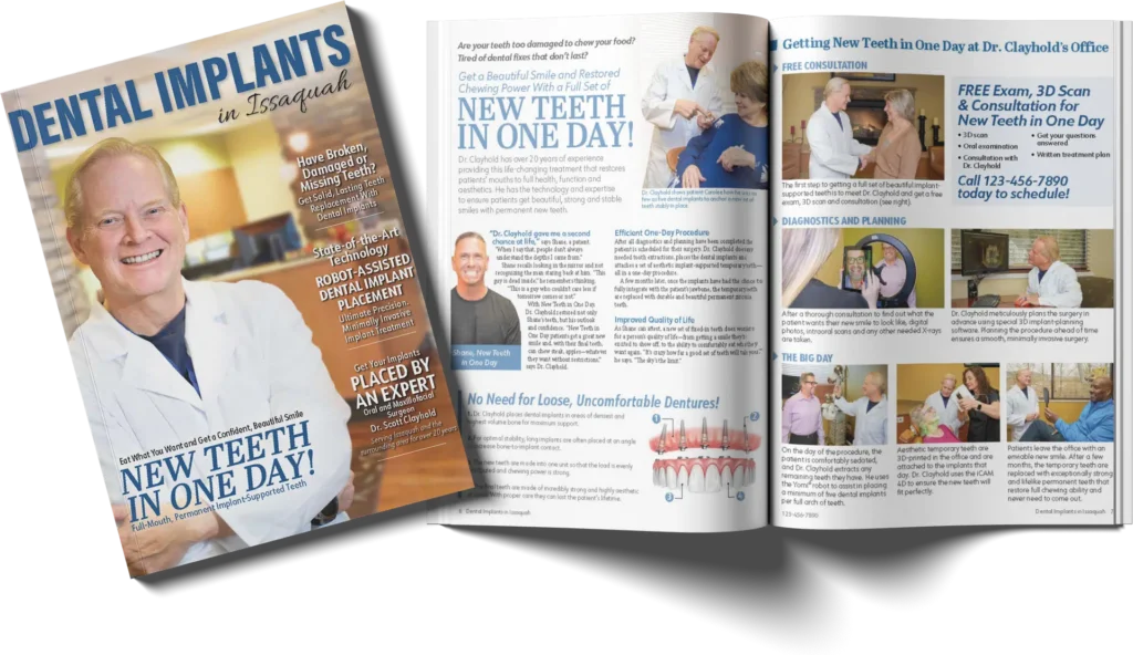Our Custom Magazines are attractive, engaging, and full of images and content that showcase the value of coming to your practice. They are designed to get you qualifed new patients for implants, full-arch and other high-production treatment.