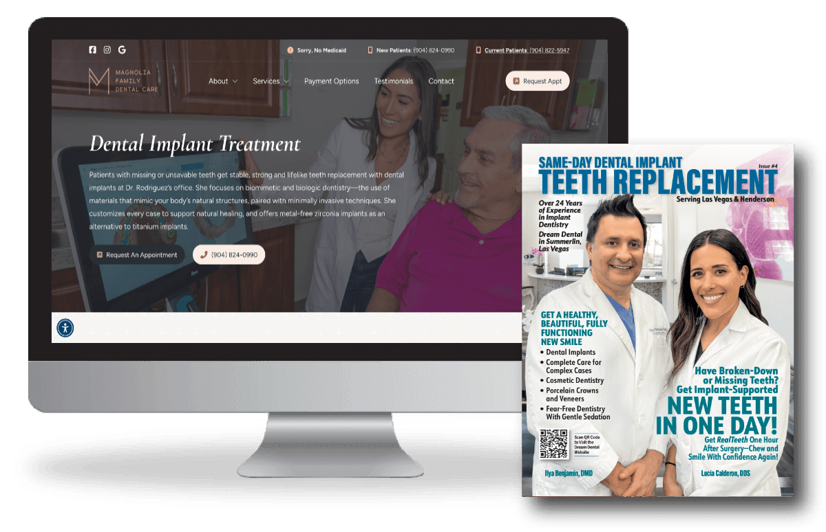 In many markets, digital marketing is highly competitive for implant and full-arch and practices can struggle to consistently generate new implant patients. This is where Gilleard’s Custom Magazine program has proven especially effective—targeting ideal demographics, building trust, and generating interest before patients ever contact your office. It is used either as stand-alone marketing or in conjunction with digital.